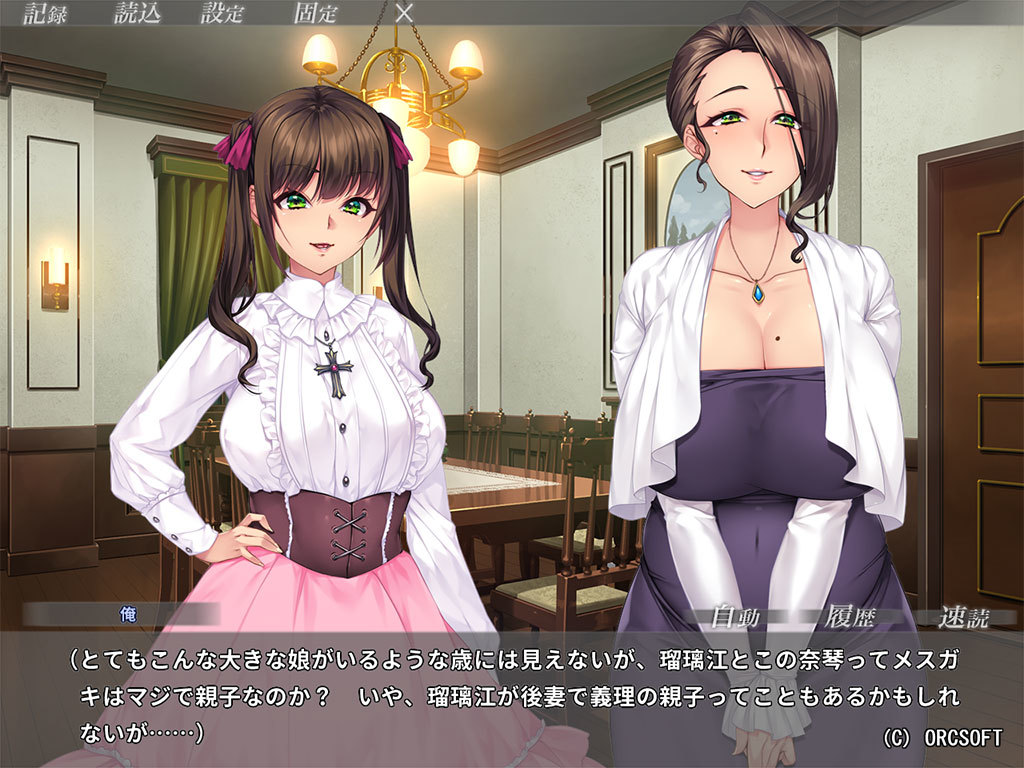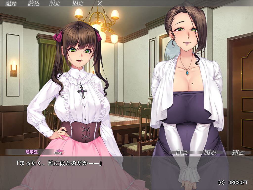 そんなあなたは哀れにもそのまま凍死するかと思いきや、雪深い山中にぽつんと佇む古びた洋館を発見し、そこの主人である妖艶な女主人に受け入れられることになります。そして色々あって、その妖しくも美しい熟女である館の主人「瑠璃江」や、その娘である「奈琴」、そんな二人に仕えるメイドの「恋」に、肉欲とチンポを叩きつける日々が始まるのです。
